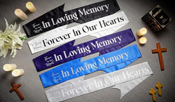 Add a personalized ribbon banner to your sympathy arrangement to share a heartfelt final message. These elegant ribbons are carefully printed and styled to complement the flowers, offering a meaningful way to express love, remembrance, and respect. Simply include your message, and we’ll handle the rest with care.